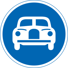 (The small sign under the round blue one in this case is not one that makes the restriction more specific, but simply spells out that the road is a high-speed national motorway, and notes parenthetically that it's a toll road.)
