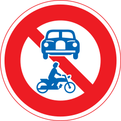 ![]() | No Motor Vehicles except two-wheel vehicles bicycles okay | ![]() | No Motor Vehicles (sort of) bicycles okay |